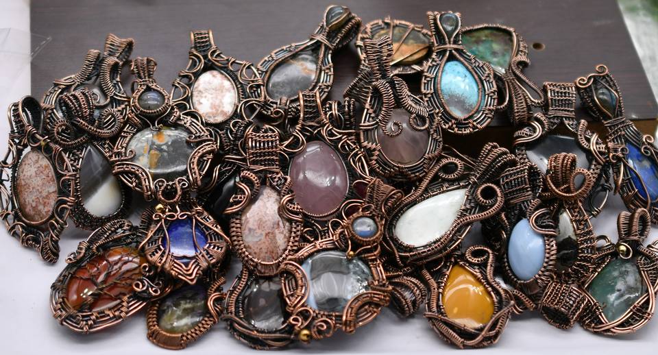 Gorgeous Mix Gemstone Handmade Copper Wire Wrap Pendant Lot Jewelry