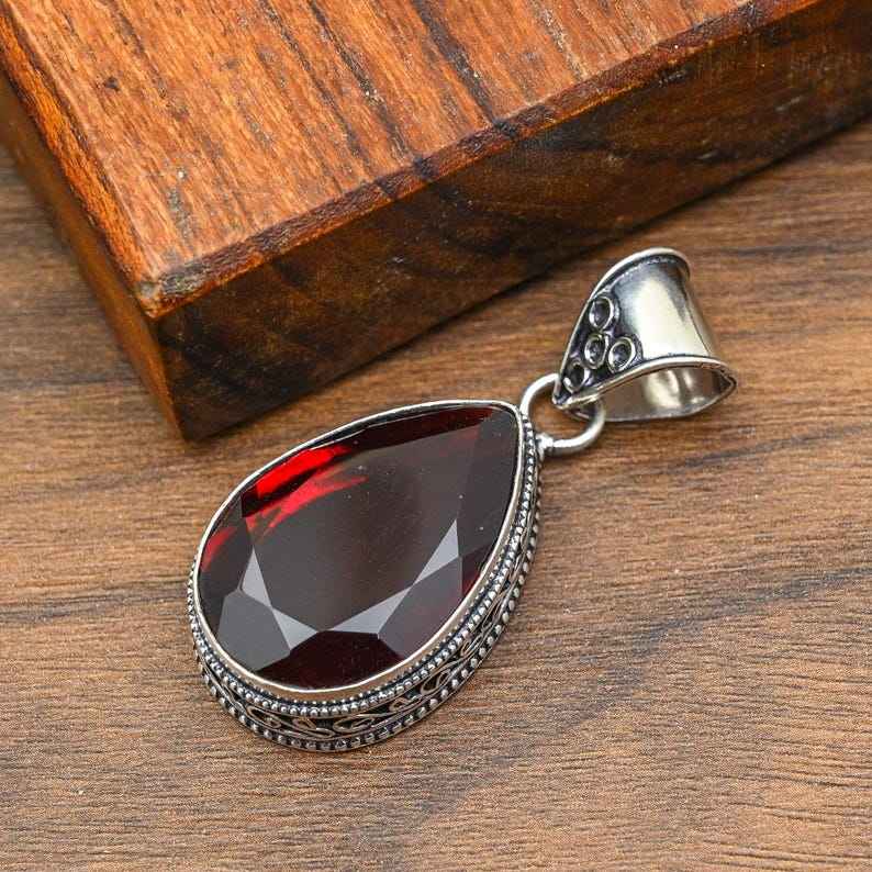 Gorgeous Red Garnet Gemstone Pendant 925 Sterling Silver Handmade Statement Pendant Natural Jewelry Gift For Friend