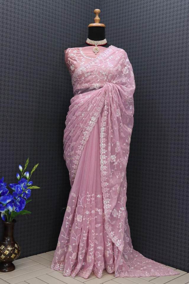 Gorgeous Shimmer Silk Sari Designer Pakistani Style Wedding and Party Wear with Sequence Cut Work Border Fancy Model Number
