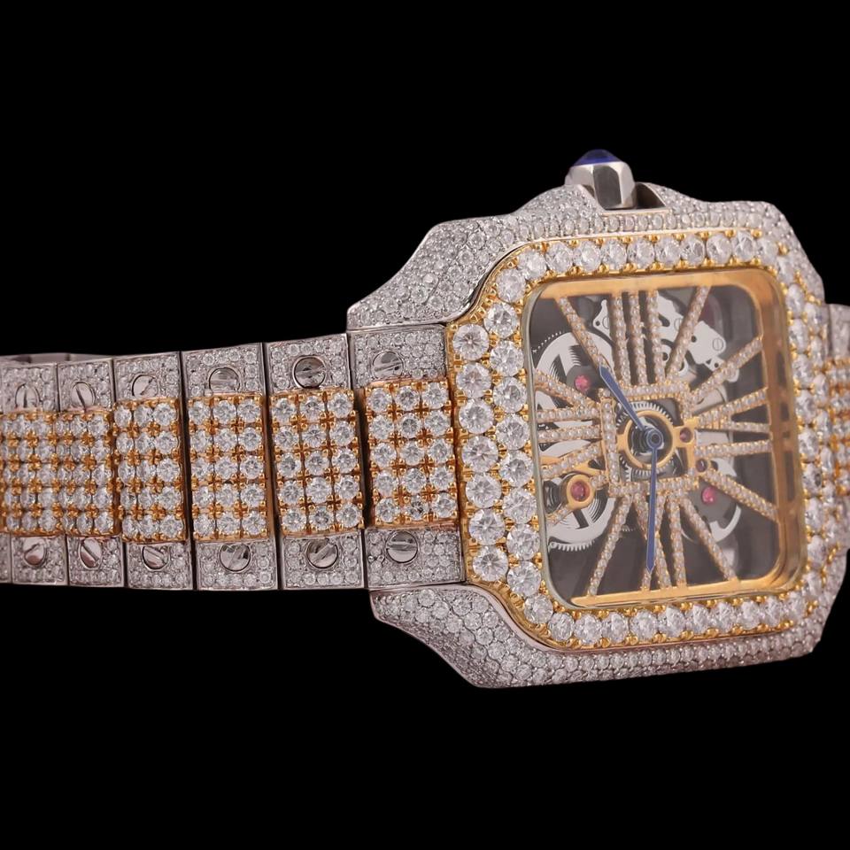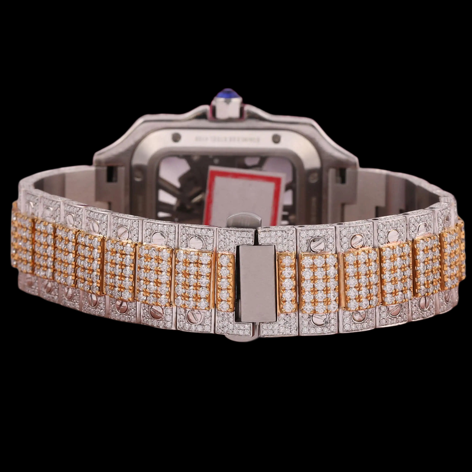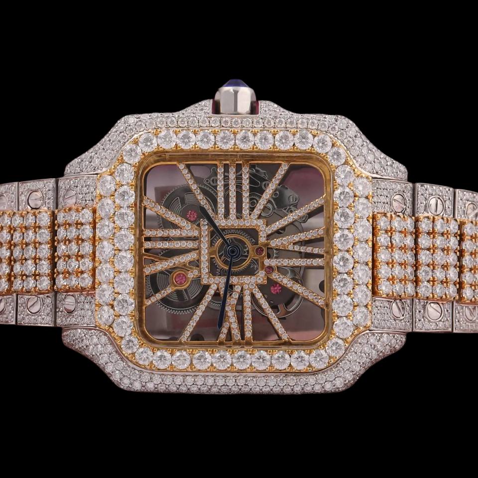 Gorgeous Square Dial Skeleton Moissanite Bezel Setting Fashion Hip Hop Man's Made Two Tone Exclusive Diamond Watch