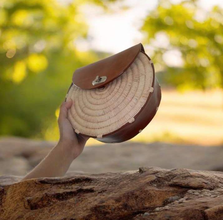 Mode:Gorgeous Round Moroccan Straw Leather Basket Bag