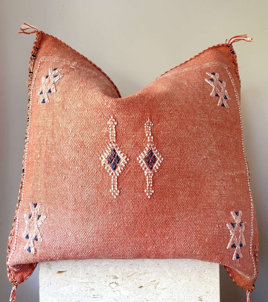 Gorgeous White Moroccan Cactus Silk Cushion Covers Pure Sabra Pillow Decorative Cushions Handmade Moroccan Abstract Pillow
