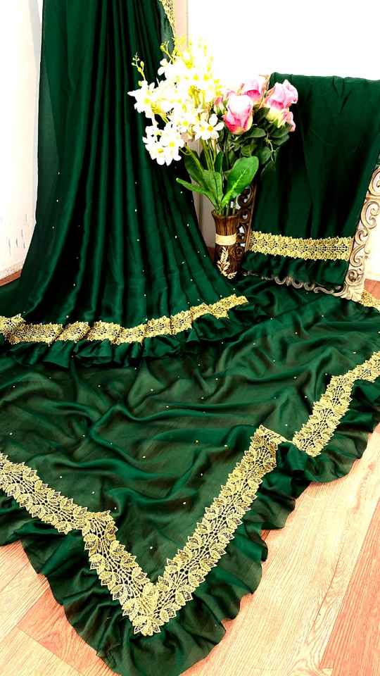 Cotton, Silk, Linen, Polyester, Rayon, Viscose, Cashmere, Nylon, Pallu Chinon and Skirt Rangoli, Georgette, Chiffon, Chinon, silk base fabricsMaterial