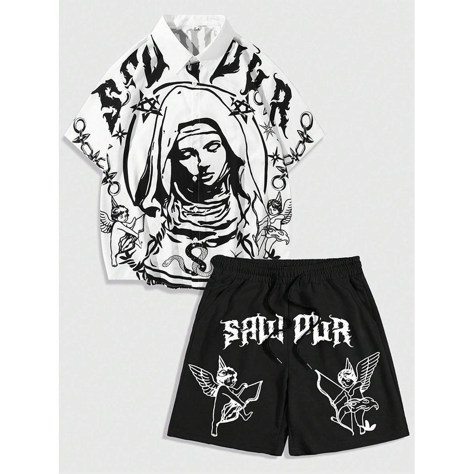 Goth Men's Summer Lightweight Custom Logo Printed Short Sleeve Casual Shirt and Shorts Set for Men