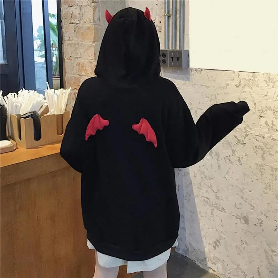 Gothic Clothes Harajuku Hoodies Devil Horns Knitted Sweatshirts Zip up Hoodie Loose Pullovers Long Sleeve Tops Streetwear