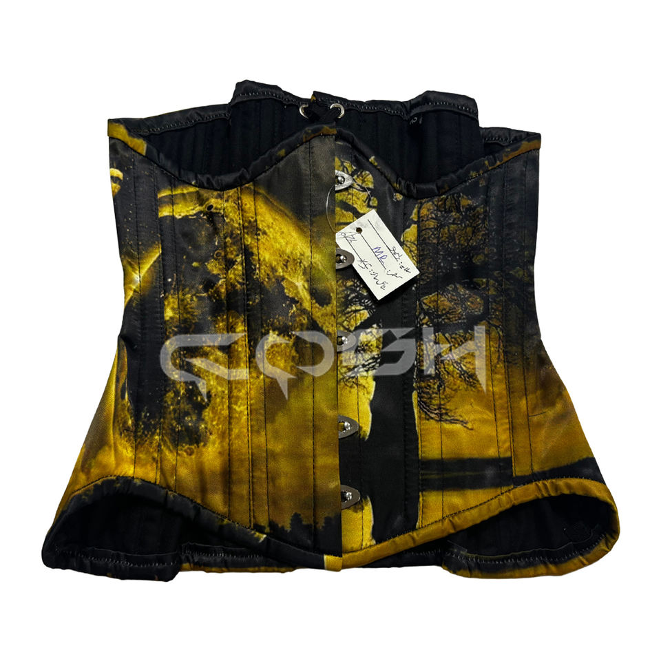 Gothic Digital Sublimated Moon Print Underbust Steel Boned Corset With Front Busk Closure