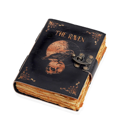 Leather Gothic journal with magical Raven Skull printed design