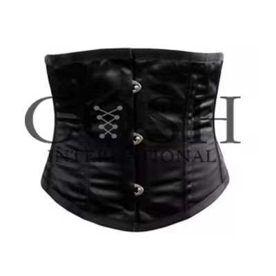 Gothic Style Underbust Steel Boned Waist Cincher Black Satin Short Torso Plus Size Curvy Shape Waspie Corsets Supplier