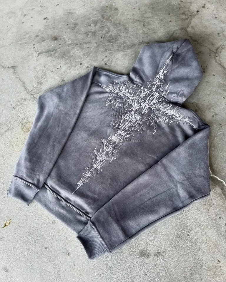 Gothic Washing Embroidery Hoodie American Retro Oversized Sweatshirt Man Hoodies Hip Hop Long Sleeve Pullover Hoodie OEM