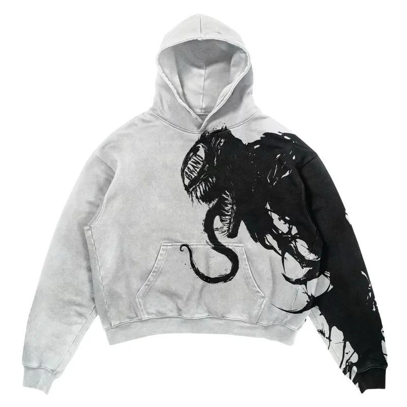 Gothic Print Design Oversized Long-sleeved Hoodies for Men Y2k Man Hoodi American Vintage Trend Niche Classic Sweatshirts