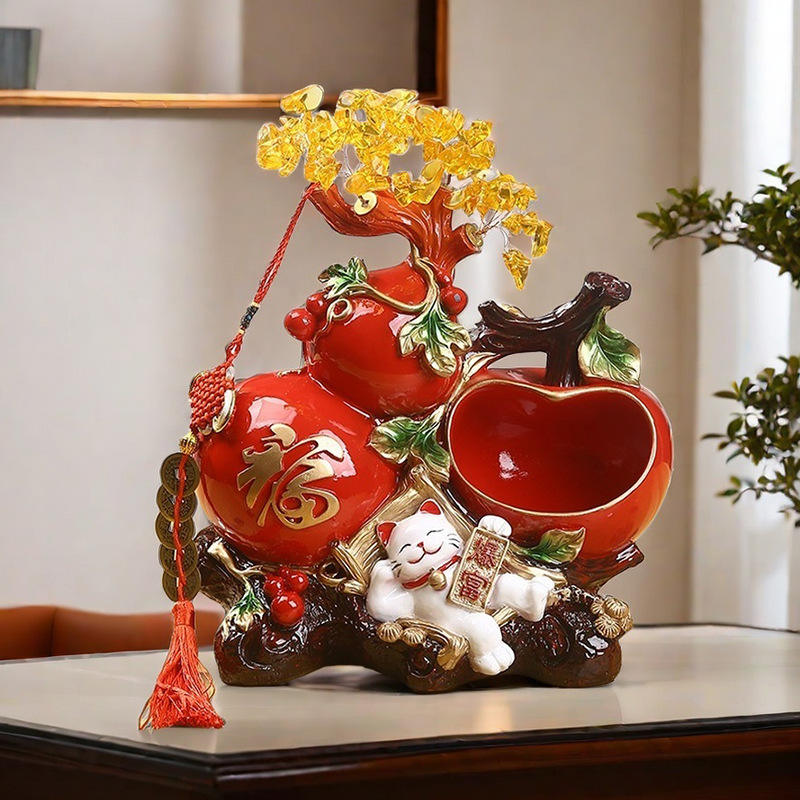 Gourd Apple Storage Folk Art Epoxy Resin Fortune Tree Home Furnishing Living Room TV Cabinet Wine Cabinet Lucky Cat Ornament