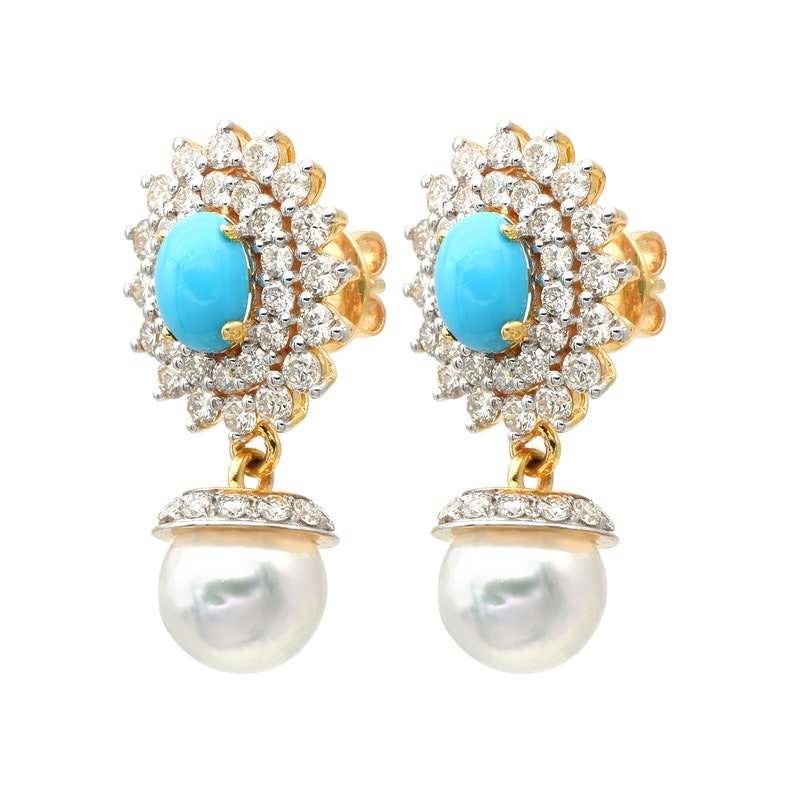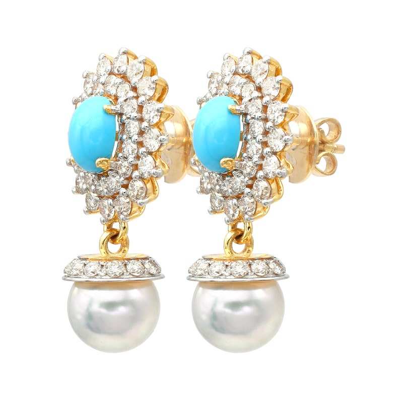 Keyword:Graceful 14K Gold Earrings With Natural Turquoise And Pearl Bringing