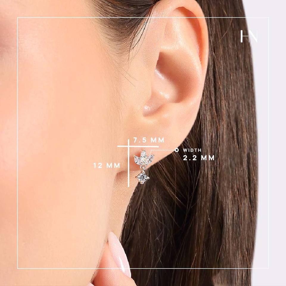 Floral CZ Drop Stud Earrings in 925 Sterling Silver with Marquise and Round Stones for Women Elegant Party Jewelry Size 12MM Use