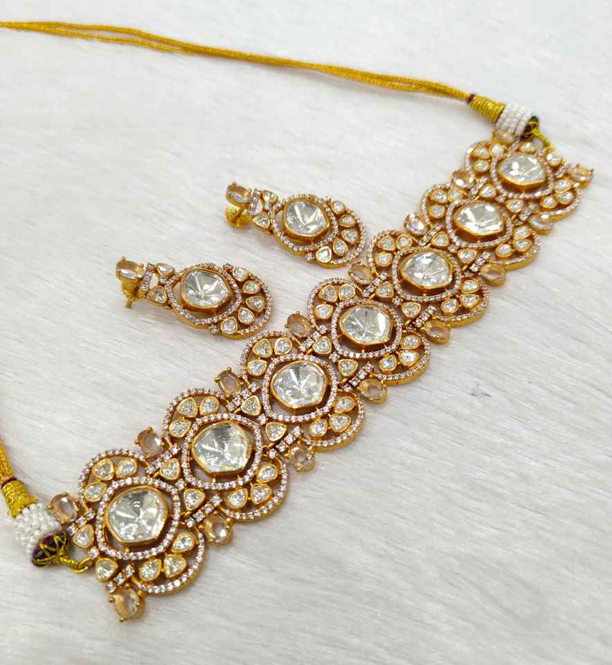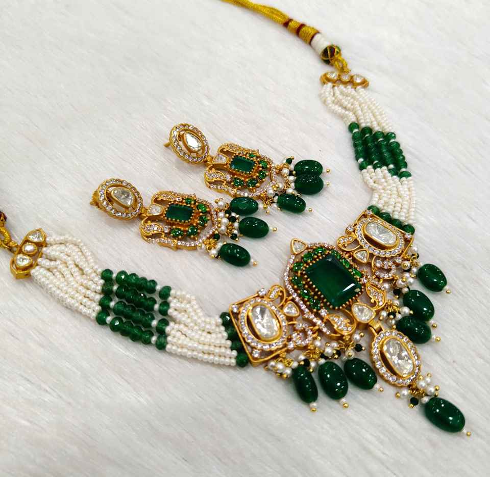 Graceful Mosenite Necklace Earrings Combo Set Stone Embellished Pearls for Daily Wear Engagement Festive Wedding Party Looks