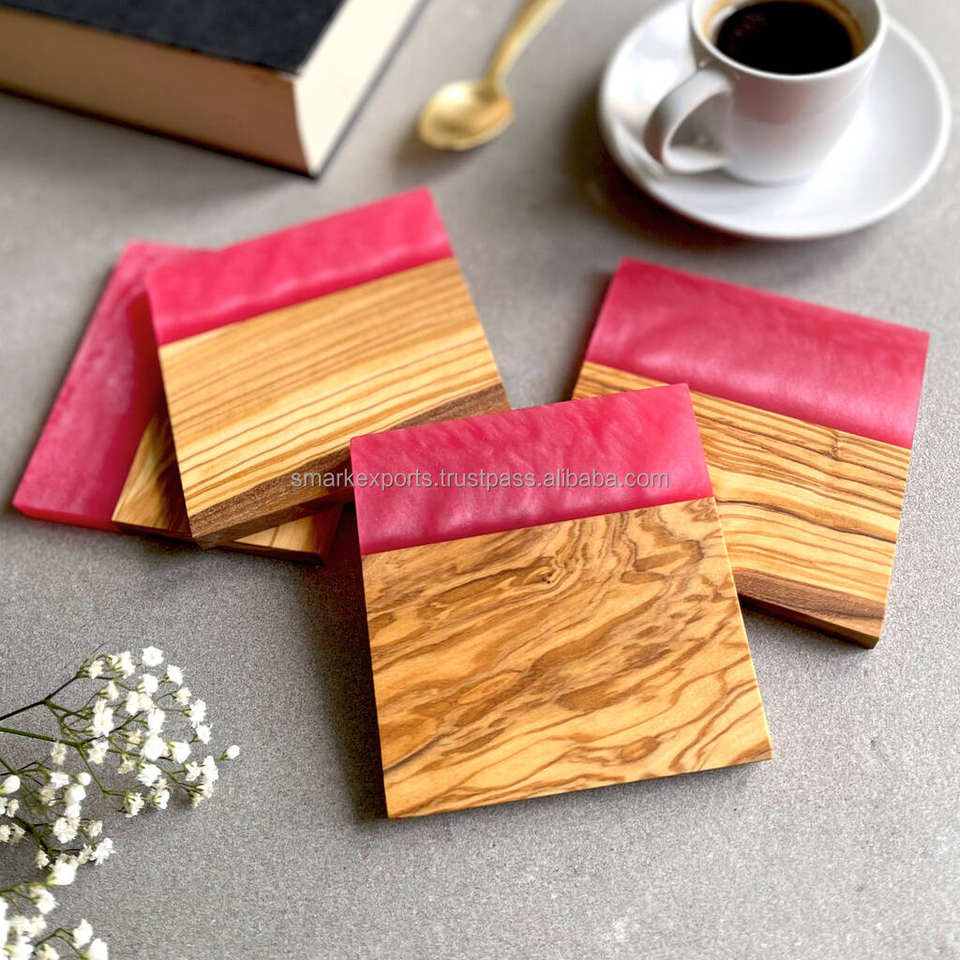 Graceful Resin Wood Coasters Set Round and Square Drink Mat Tea Coaster Cup Holder Dining Table Stylish Living Kitchen Decor
