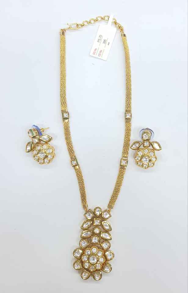 Graceful Women's Fashion Jewelry Set Kundan Pendant Necklace with Green Stones Earrings for Sarees Lehengas Festive Outfits