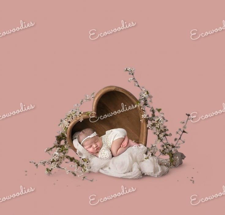 Graceful Wooden Brown Color Heart Shape Photo Props Studio Posing Newborn Baby Props for Photography Bamboo Wooden Basket