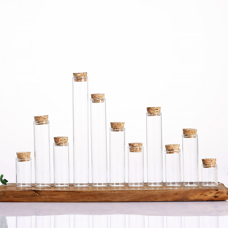 Grade 30mm Test Tubes Clear Flat Bottom Borosilicate 3.3 Glass with Aluminum Cork Stopper and Wooden Cork Cap
