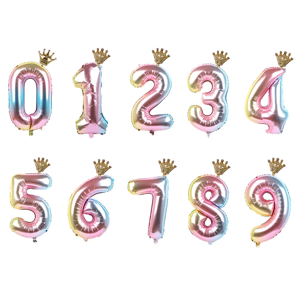 Gradient Rainbow Party Decoration Set Disposable Tableware Crown Balloons Paper Banner for Birthday