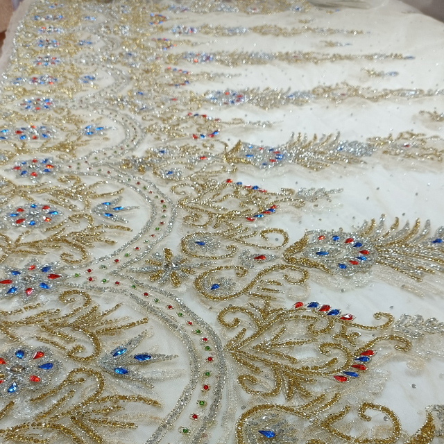 Gradient Sequined Lace Fabric Colorful Polyester Embroidered Wedding Dress Textile Beads 5 Yards Wholesale