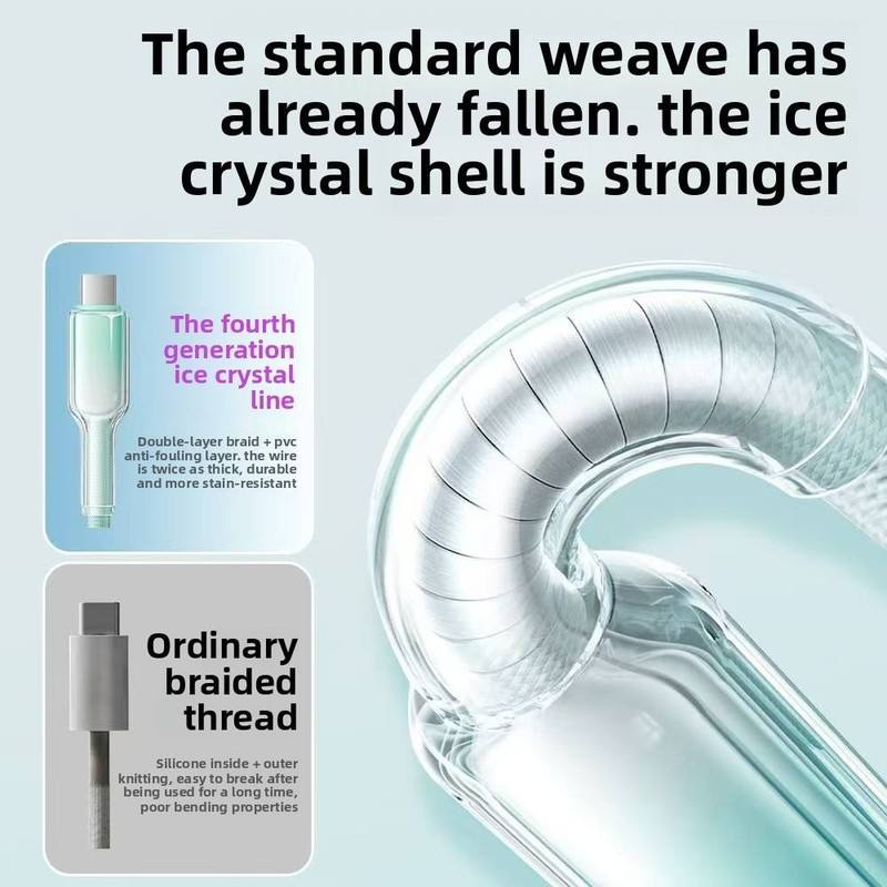 Gradient transparent ice crystal nylon braided cable for fast charging mobile phones