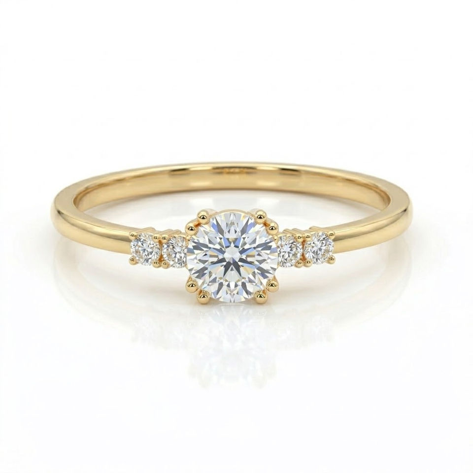 14K Solid Gold Round Diamond Engagement Ring