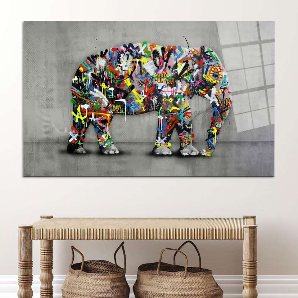 Graffiti Elephant Canvas Art: Modern Urban Print Wall Decor,TEMPERED GLASS ART
