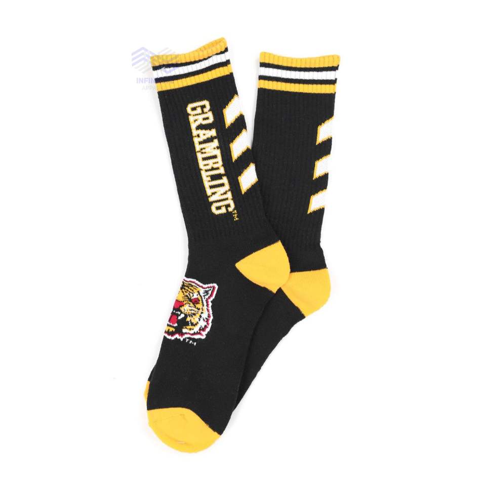 Grambling State University Fashionable Athletic Socks 100% Cotton Knitted Logo Bottom Daily Life Winter Use Knee High Fleece
