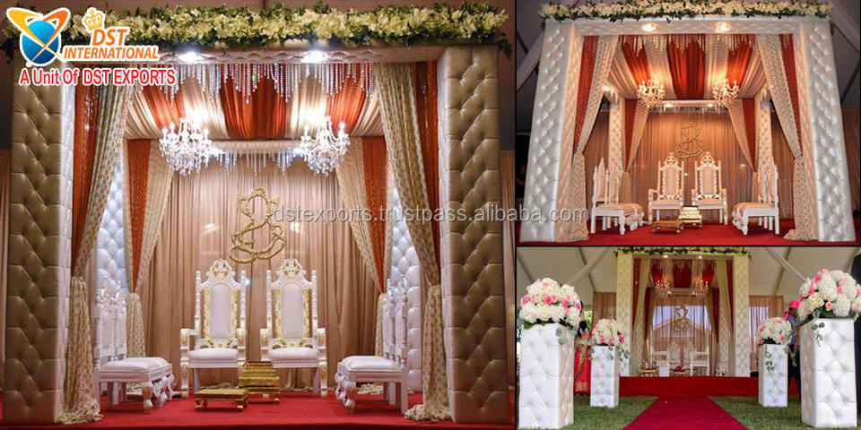 Grand Bollywood Wedding Fiber Mandap Set with White Lighted Pillars Haveli-Look Wedding Setup Iron Chairs Backdrop
