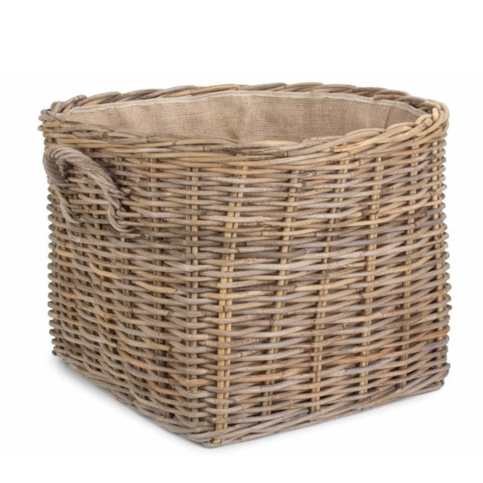 Grand Cordura Lined Rattan Storage Basket with Handles XXL Square Metal Home Decor for Home Use