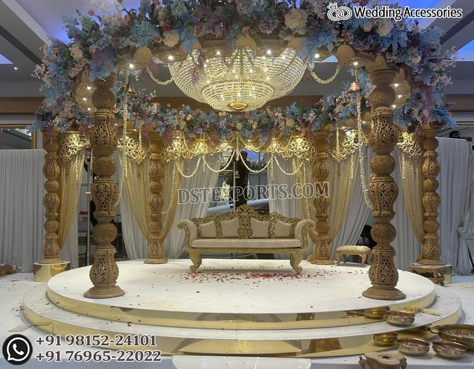 Grand Indian Wedding Event Wooden Mandap Trending wedding Decor Round Mandap With Triple pillars Newly Design Carved Mandap UK