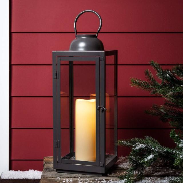 Grande Lanterne avec Sommet en forme Large Dark Grey Metal Operated Fully Waterproof Outdoor Garden LED Candle Home Decor