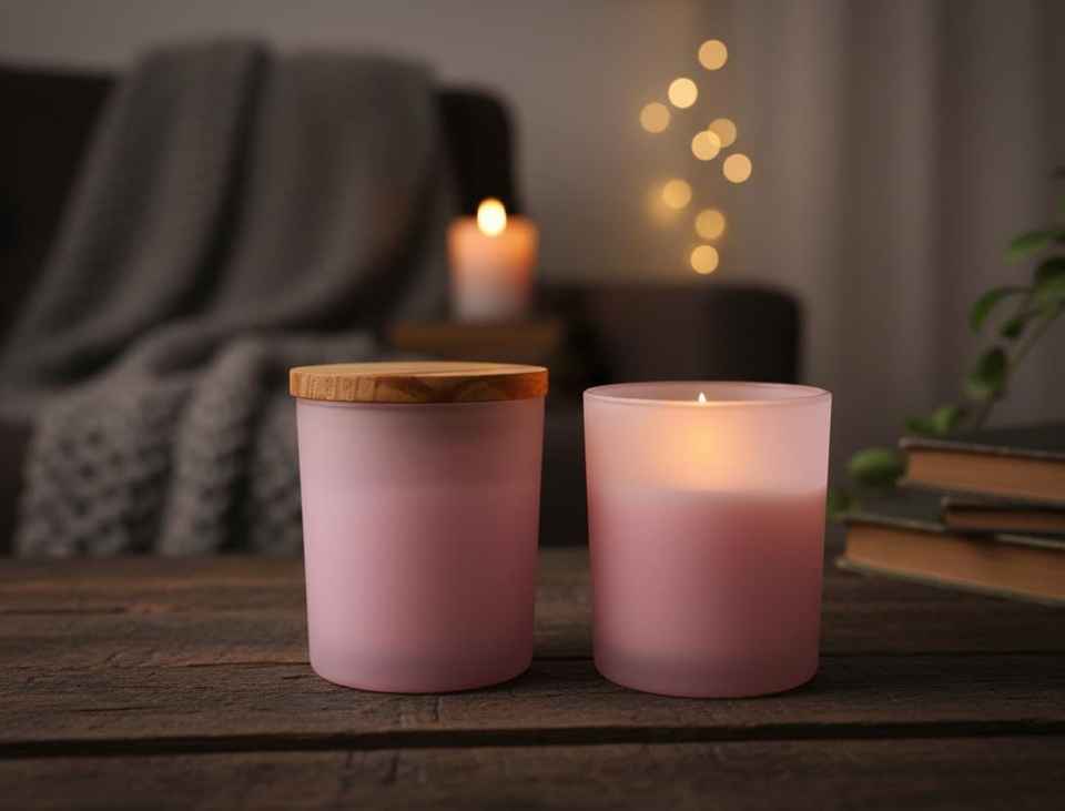 Grandeur Frosted Glass Soy Wax candle With Wooden Lid Customized Private Label Box and Logo available best price for wholesale