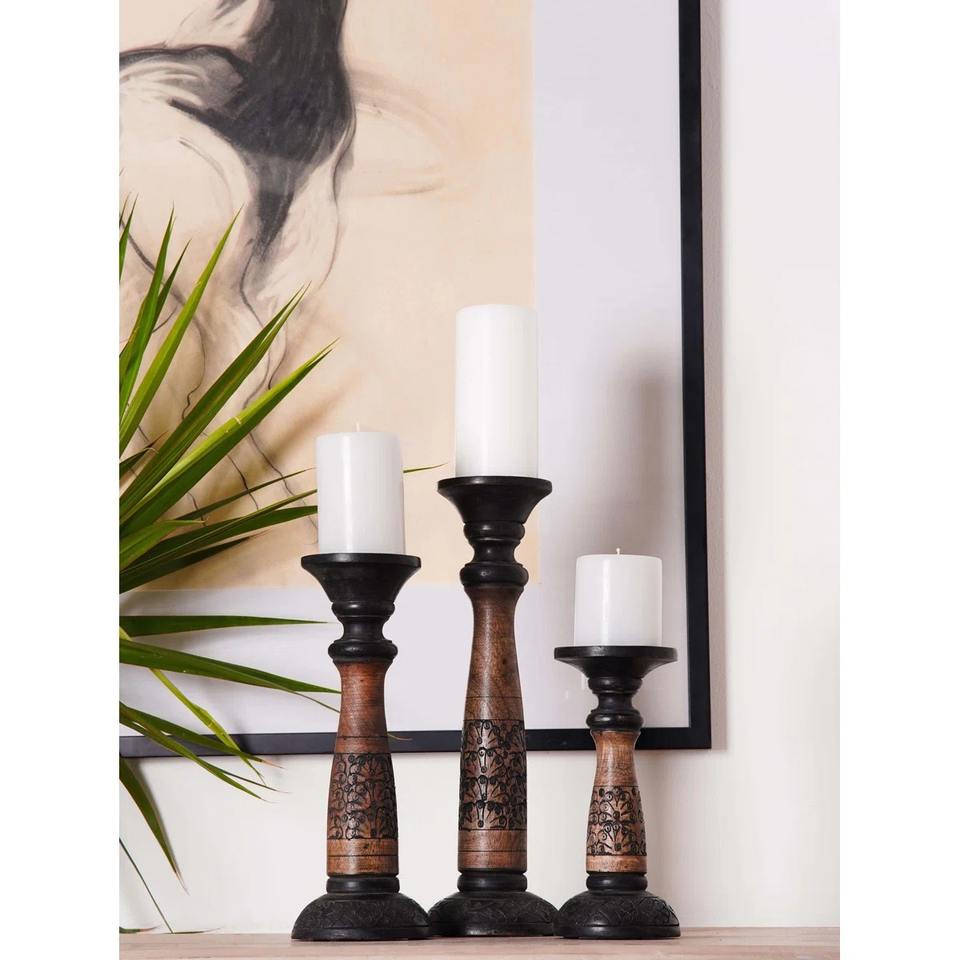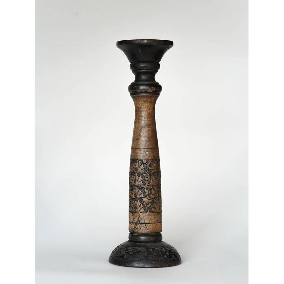 Graved Royal Style Wooden Candle Holder for Living Room Decor Premium Carved Look Decorative Tabletop Accent From India