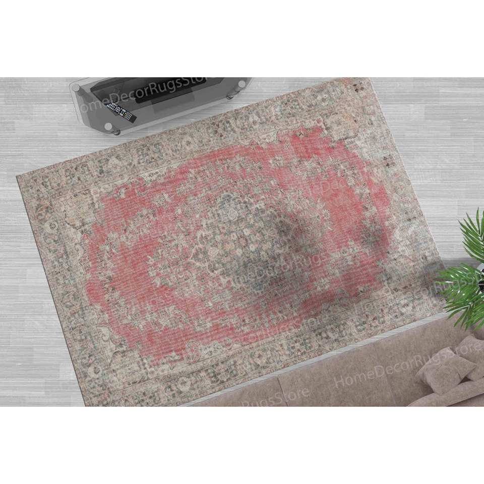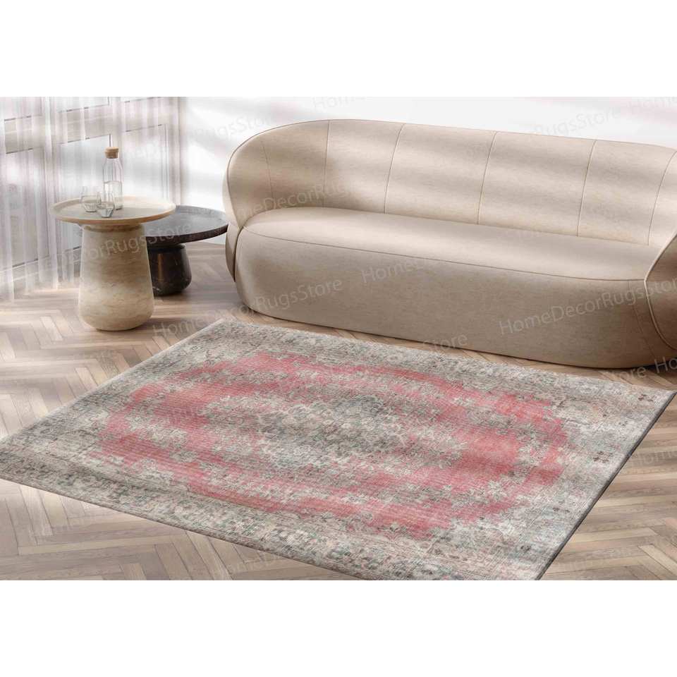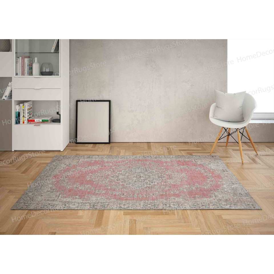 Gray And Red Printed Rug, Moroccan Design, Turkish Style, Large, Medallion,With Pile Soft Rug