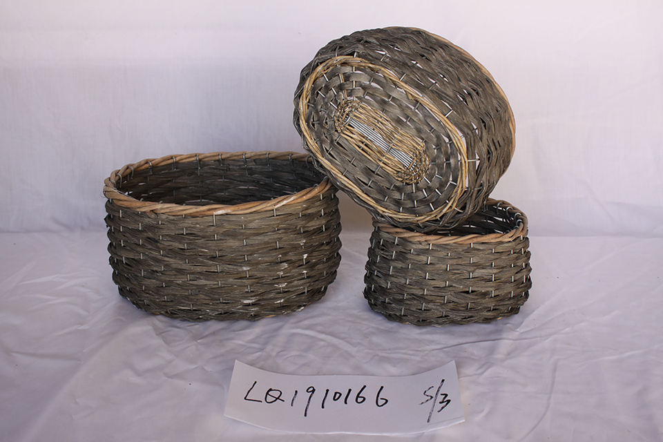 Gray Laundry Basket Set with Wooden Strips and Wicker for Home Storage and Decor