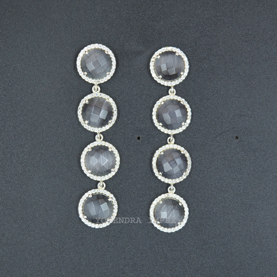 Gray Monalisa With cz Gemstone Hoop Earrings 925 Sterling Silver Jewelry Earrings Elegant Earrings Excellenet Quality