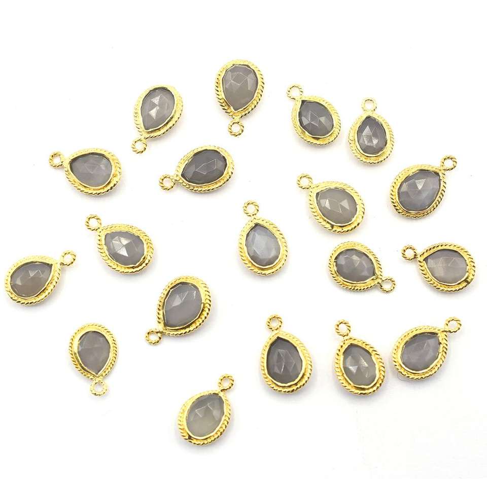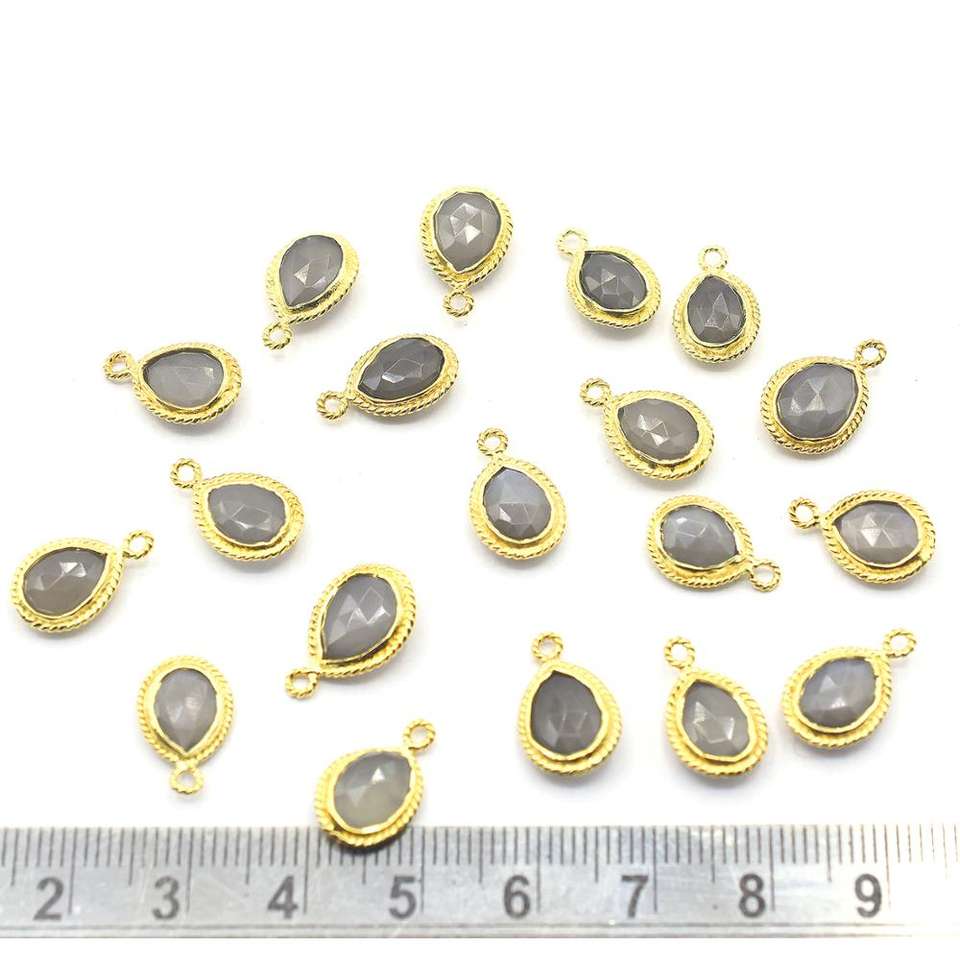 Gray Moonstone Pear Shape 925 Sterling Silver Bezel Gold Plated Pendant Handmade Jewelry Making
