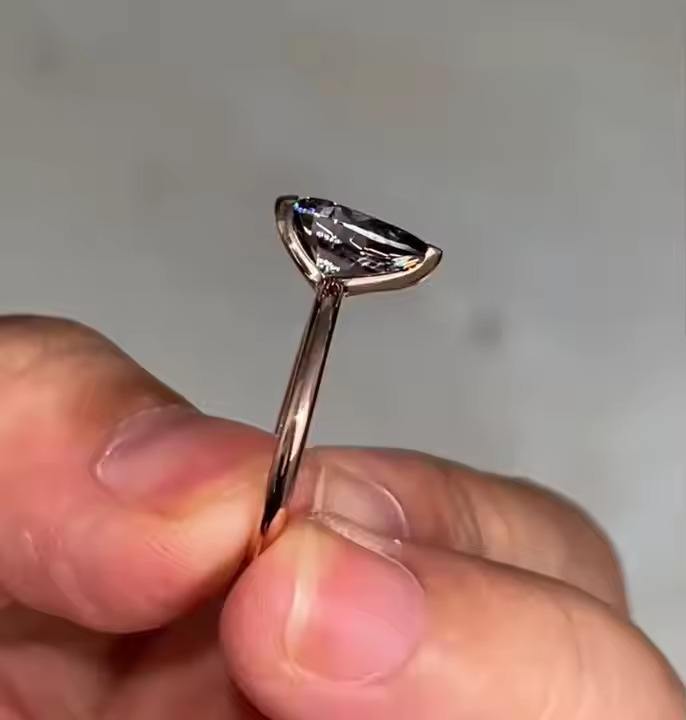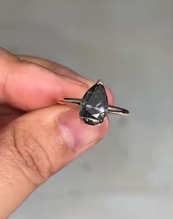 Gray Original Moissanite Diamond Engagement Ring VS2 Certified Gold Bezel Set Pear Cut Bridle Wedding Ring
