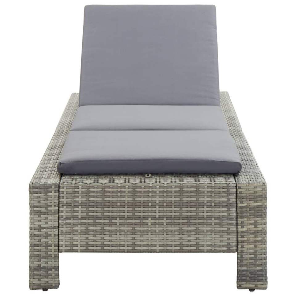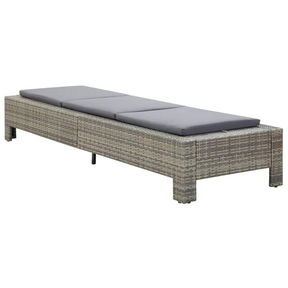 Gray Poly Rattan Sunbed with Cushion Stylish Sun Lounger