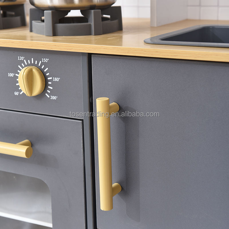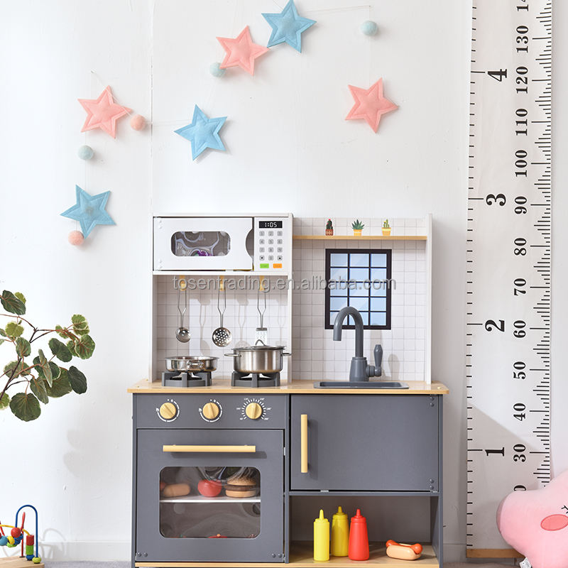 Gray Pretend Cooking Set for Toddlers Wooden Indoor Kids Play Kitchen with Microwave, Oven, Stove & Sink