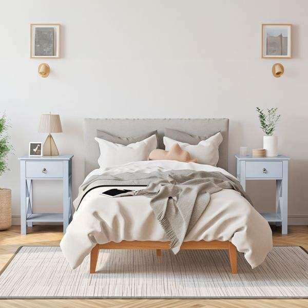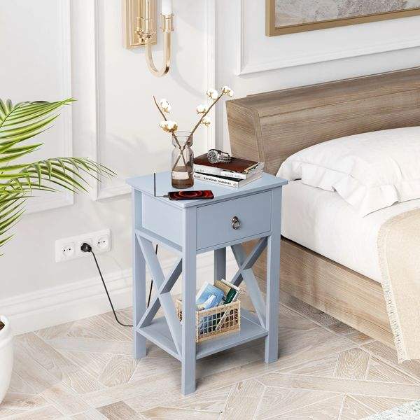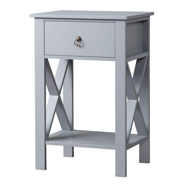 Gray Side Intersection Style Bedside Table with Two-Layer Drawer Nightstand and Coffee Table