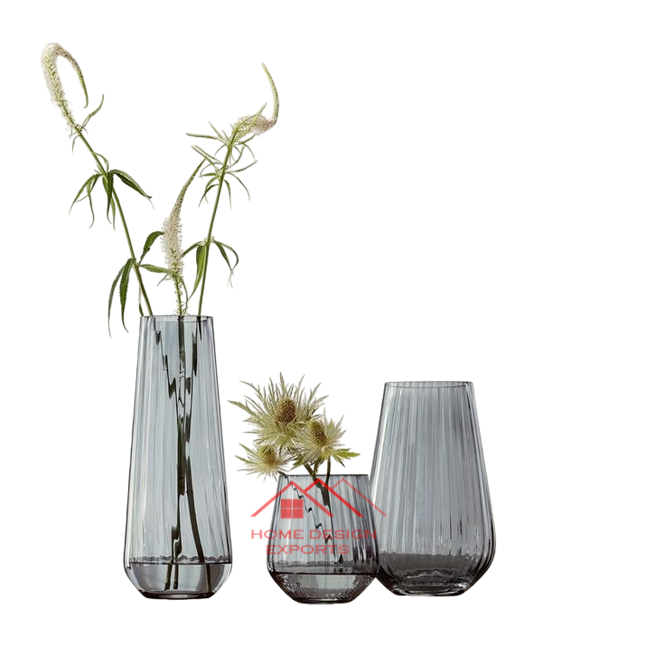 Gray Smoky Finished Glass Flower Pot Luxury Home Hotel Decorative Glass Vase at Cheap Whole Wale Rate