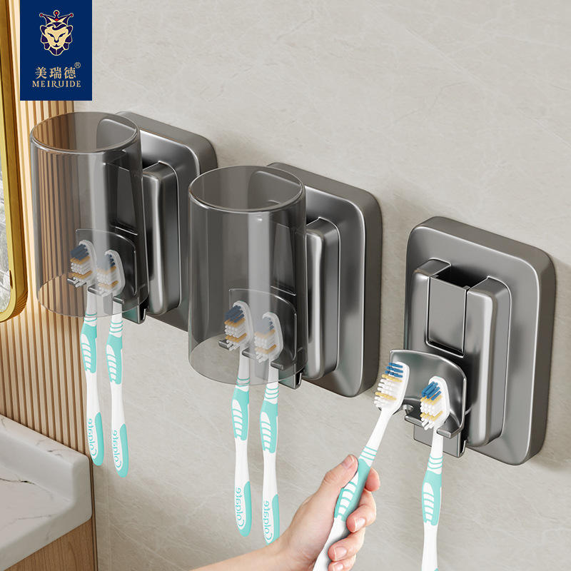 Gray Suction Cup Toothbrush Holder Double Space Saving No Drilling Bathroom Storage Rack