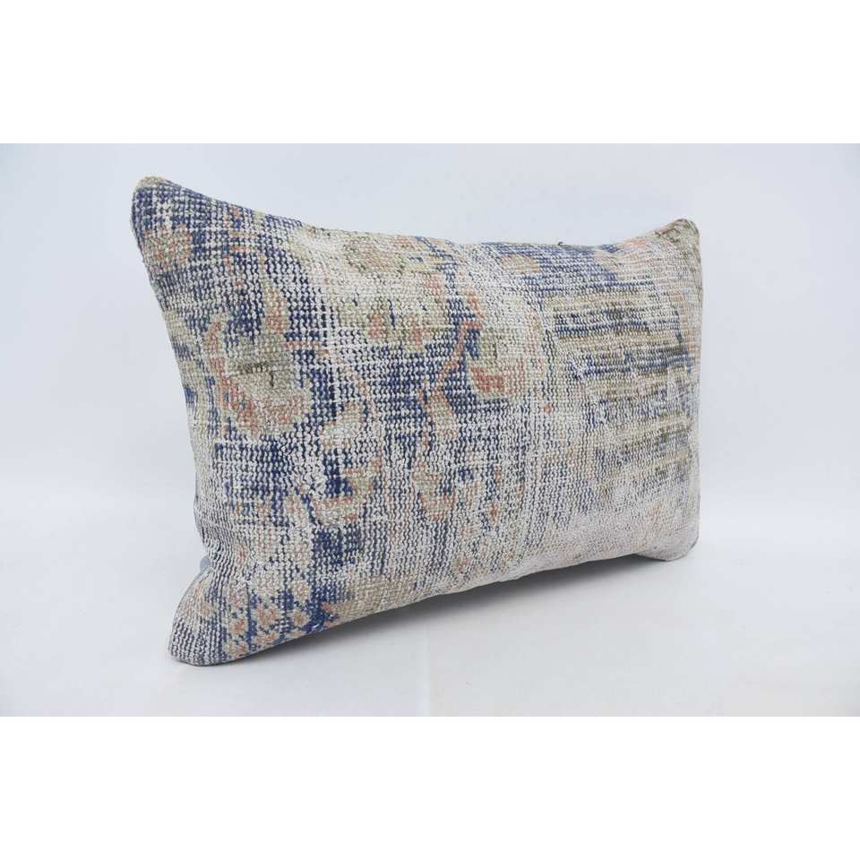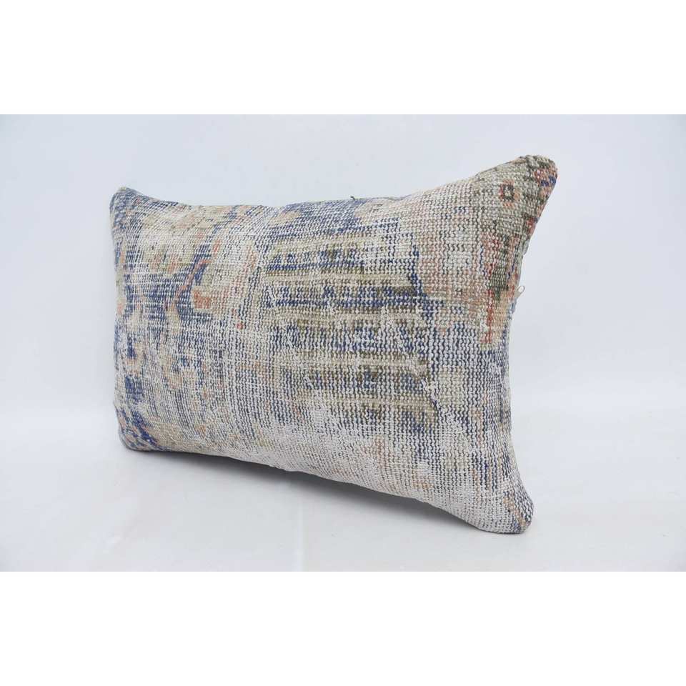 Gray Toile Vintage Pattern Patchwork Wool Kantha Pillow 16x24 Inch Woven Decorative Cushion