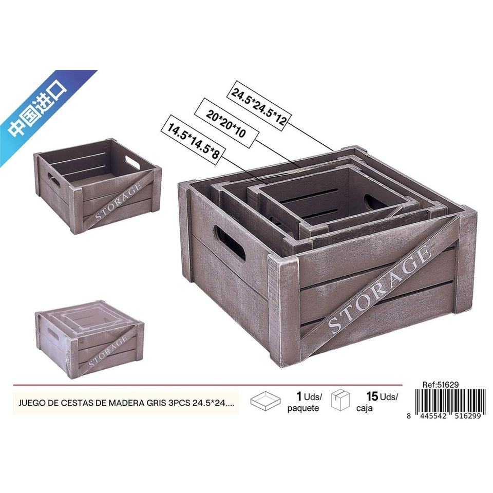 Gray Wooden Basket Set - Home Decor