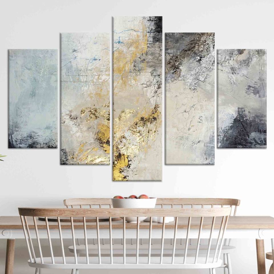 Gray and Gold Abstract Plaster Art: Modern Printed Canvas Wall Decor,SET OF 5 MIX CANVAS