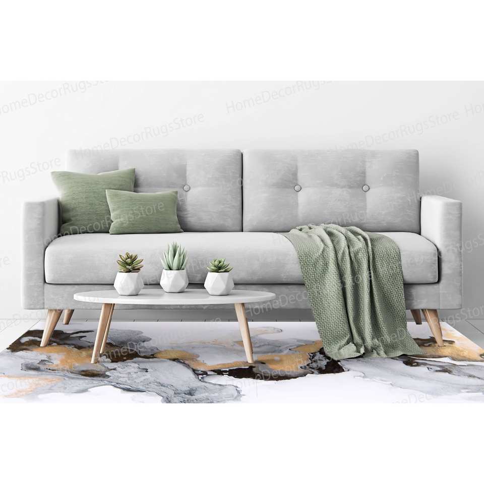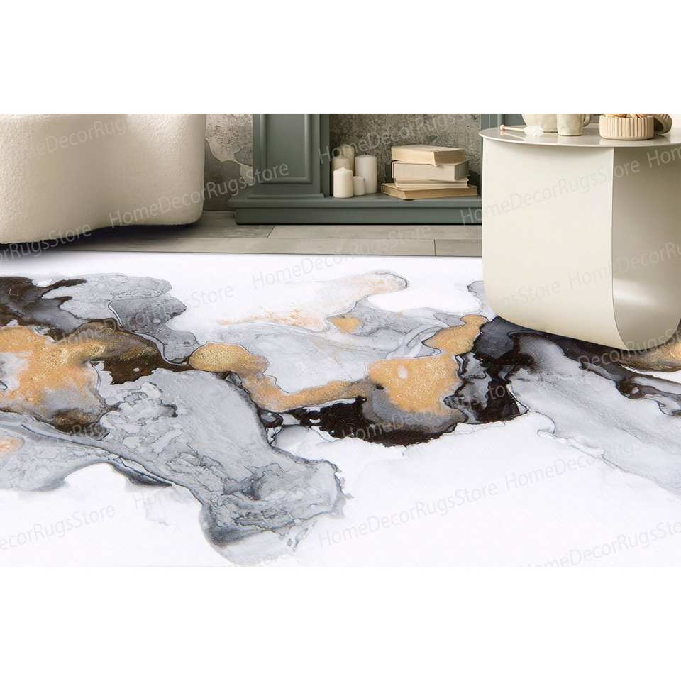 Gray and Gold Marble Printed Rug: Modern Elegance for Any Space,Luxury Velvet Rug