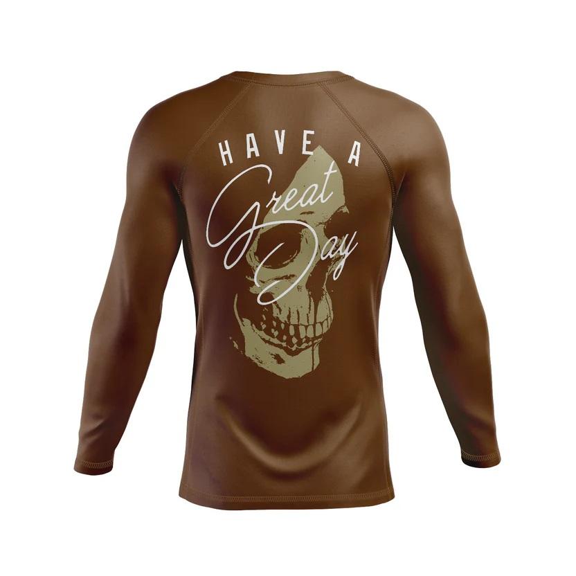 Great Day Men's Rash Guard Short Sleeve Breathable Brown UPF50 100% Polyester