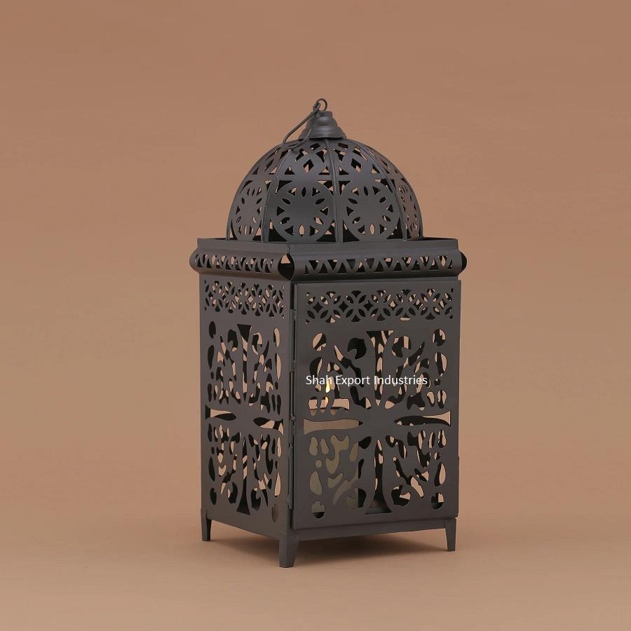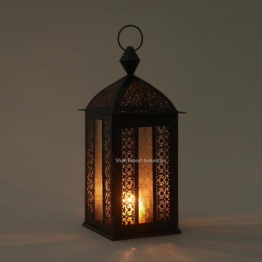 Great Design Handmade Metal and Glass Hanging Lantern Black Color for Home and Christmas Lighting Decoration Supplier